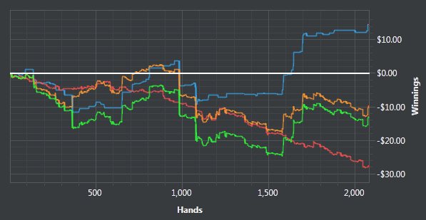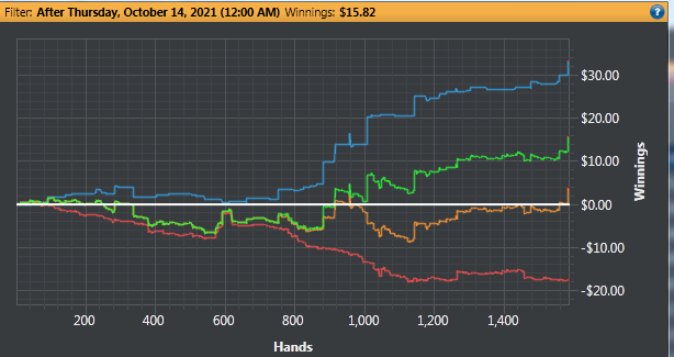 Сегодня думал отдохнуть от катки и разобрать подробнее свою игру за это время(там уже 28к рук как никак). Нужно как то понять,решить по какой страте играть .В том числе против различных типов оппонентов. Я думаю,что потерял первоначальную ,пускай и крайне упрощенную и беззубую, нить игры. Но она давала больше профита. Впрочем, может не было и нет никакой нити. Есть только дисперсия.