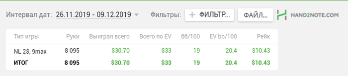 ну, хули, как то так... доигрывать 1,5к рук смысла не вижу, на общую картину это не повлияет уже