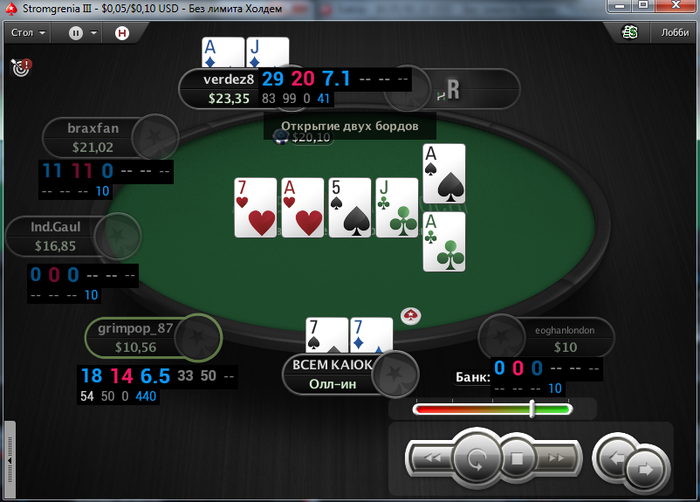 Как какая нибудь акция, серия-хуерия, ты хуй чё победишь. Сидишь тихо, сосешь плюс минус около нуля, начинаешь отмораживаться, хуяришь тупые блефы, или годные блефы, но в ебанных тупарей(понятно, что они нихуя не годные в этой ситуации), автомат тут же возвращает и ебашишь, сука, в тот же ноль. Заибался орать в монитор уже.