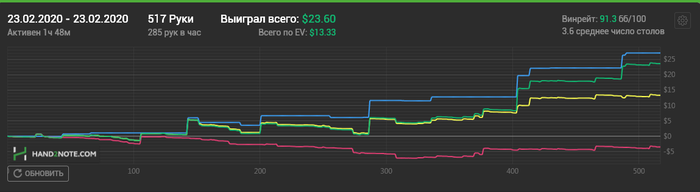 я даже кэшаут не делал, какого хуя так на пятерках хуесососят, а.. блочить опять пришлось. 300 рук в час, это 17 часов какой то ебучей ебли... я еще страховки редко брать стал, типа обратка должна поканать... хуятка, ага