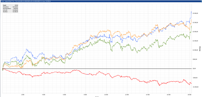 Julio, не надо пытаться брать меня на понт графиками. По-моему нетрудно догадаться какие они на самом деле, ведь мне не стыдно показывать минусовые графики и я не пытаюсь пускать пыль в глаза. Плюс не выкладываю по причине того, что я не хочу мотивировать людей приходить в покер. Тут куча боли и слёз, это далеко не так просто как нам представляют. Да есть профит, но вероятность того, что какой-то рандомный человек сможет нормально зарабатывать покером не велика. Поэтому я выступаю в роли демотиватора. Дальше пусть каждый решает сам, что ему делать. Были бы здесь только такие люди как ты (неплохо зарабатывающие в реале), то я поступал бы наоборот.