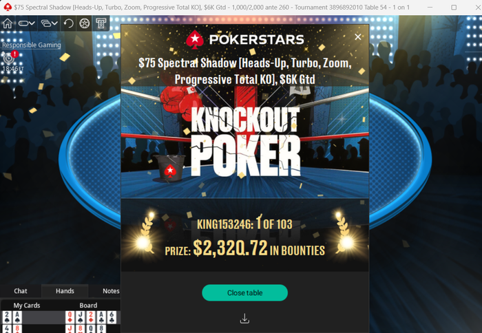 Не было бы у мобильного приложения старзов такого консервативного ограничения на количество играемых столов - можно б было попробовать побиться за титул игрока следующей серии со своего 100-еврового агрегата с пляжа, как за этот микросерийный тотал нок ха за 75.