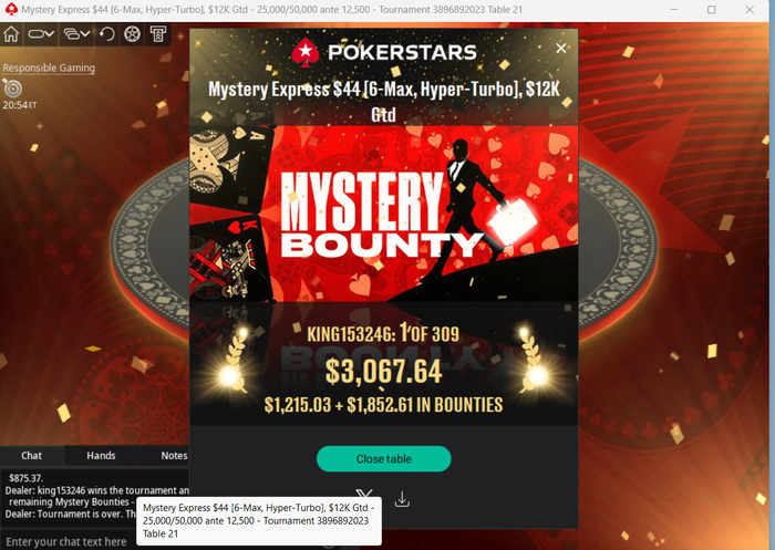 По итогу, заявил за кеш стол 10/20 крон 2000.