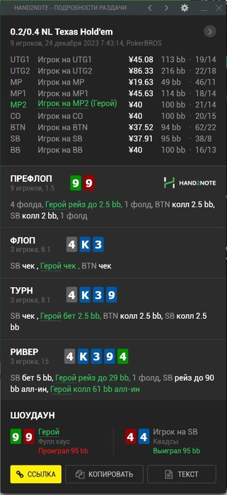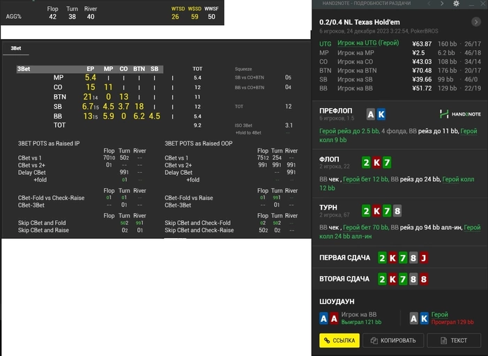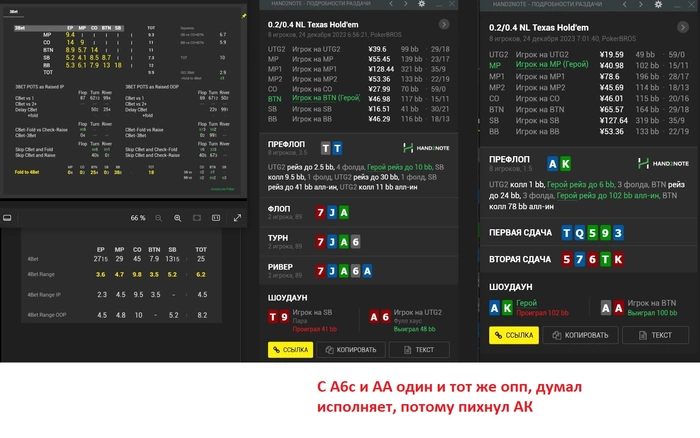 A_NAVI40K_K, Ха, мы пересекались, понял))) За ран, наверное, вот только по второй раздаче мне не понятно, насколько плохо я сыграл..
