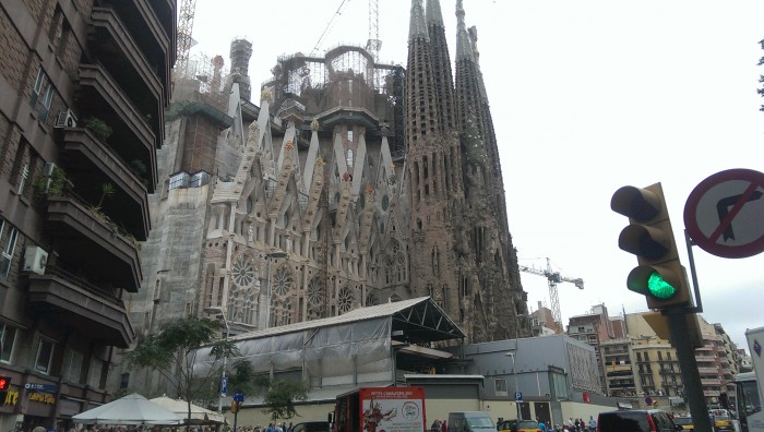 Прошел первый нормальный день в Барсе. Погода что-то не очень, дважды попали под дождь вчера, но он достаточно быстро заканчивался. Сегодня с утра тоже шел, но сейчас почти сухо. Впрочем, есть и плюсы - не жарко. Остановились мы в отеле Ayre Hotel Caspe: на букинг.ком были неплохие отзывы по поводу его расположения. И действительно: до метро семь минут пешком, до каталонской площади 10. До Sagrada Familia мы шли вчера аж минут 20. Веселый парень на ресепшне по имени Рубин сразу же дал нам карту со схемой метро, обозначил там места, которые стоит посетить, рассказал, что поющие фонтаны работают чтврг, птн, сббт с 9 до 11.30. Так вот, вчера мы пошли к Фамилии.