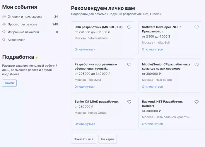 Сейчас если тупо открыть hh.ru, то будет вот так