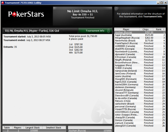 Турнир на 35 человек длился 32 минуты. Илья как вы считаете чего больше нужно для победы в турнире с такой структурой? Удачи или мастерства? А может вы знаете какой то секрет?