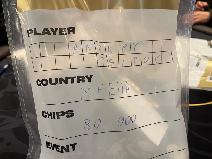 В последней раздаче дня закрыл 12бб пуш шорта с < . Во втором дне у нас 53ББ