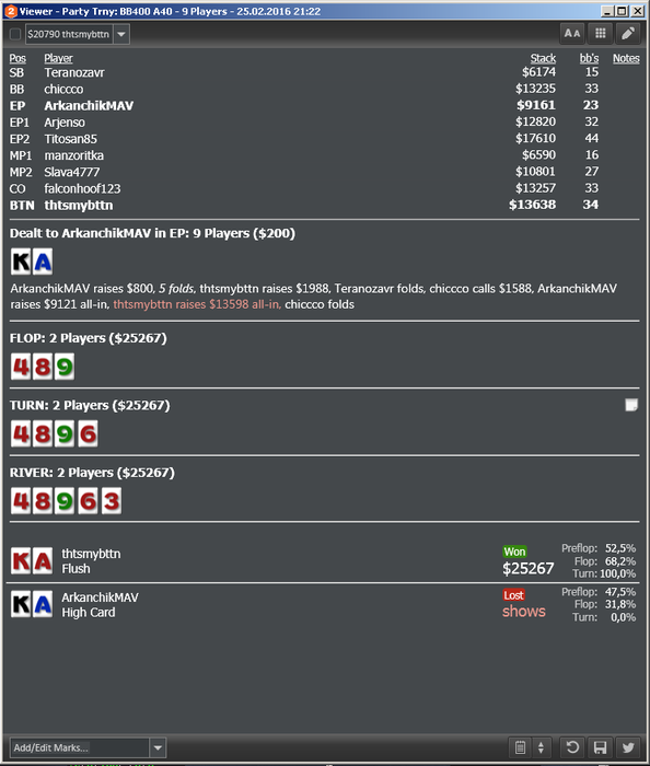 Сегодня решил купить Simple Postflop!Комп слабоват считает подольше раза в 2-3 чем в видосах у Иннера. Придется чутка апгрейдить. Это пожалуй последняя прога для улучшения игры в моей коллекции)пожалуй в ближайшие пол года точно. Так что до середины мая планирую максимально катать и задрачивать Флопзилу,Крев и SP. В мае поеду на ЧМ по хоккею отдохну)А потом все по новой ведь покер это СВОБОДА