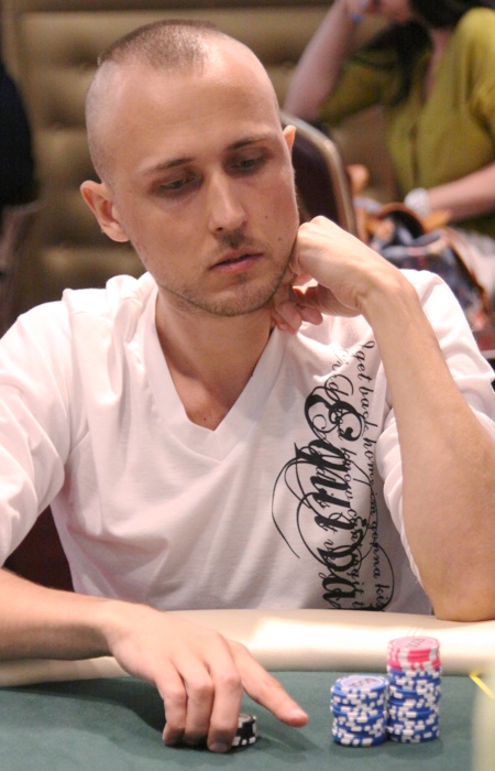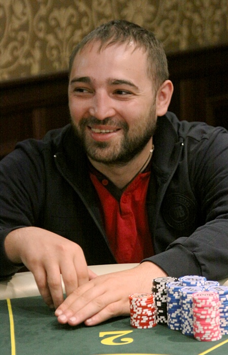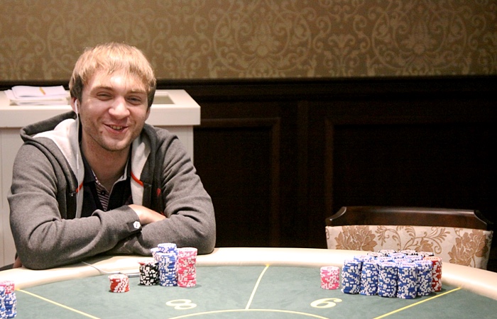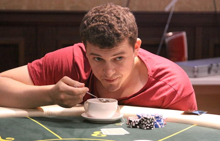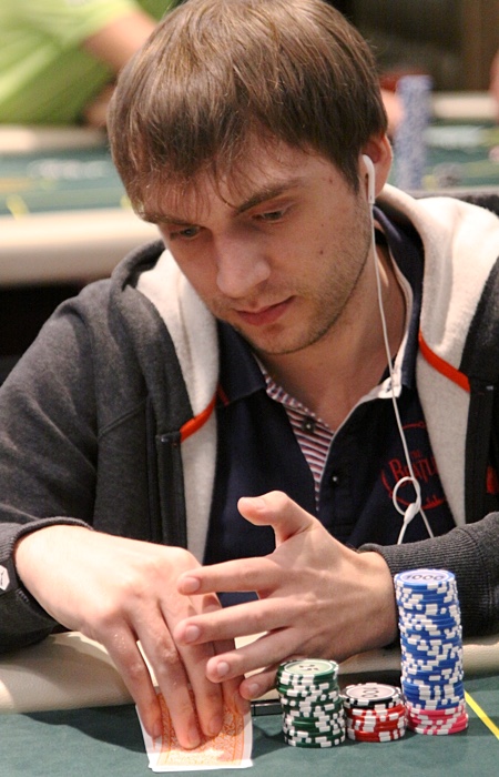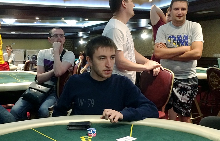 Тут же Иёшкин удвоился о Дробышева. Ветеран залимпил с УТГ+1, Павел - 7,500. Колл. Флоп и 5,400 от рэйзера. Колл. На терне Анатолий донкнул - 9К. Колл. На ривере он поставил то же самое, но... получил олл-ин от Иёшкина. Колл.