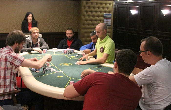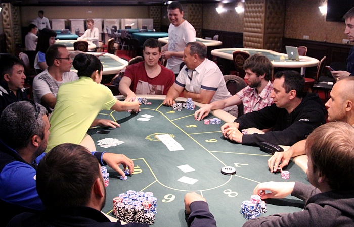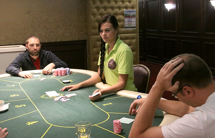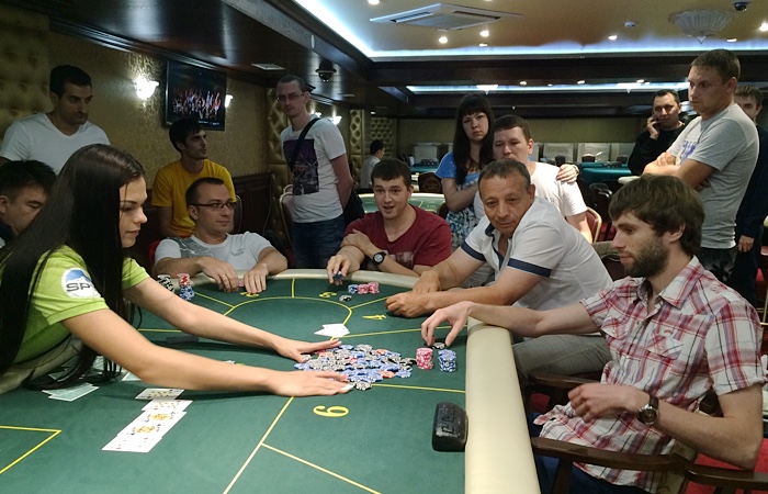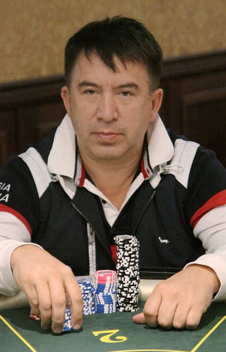 Затем выбыл Дробышева. Ветеран, как часто бывало, зашел лимпом с первой руки, Борисов не стал переставлять с ББ. На флопе он прочекал, Анатолий сделал небольшую ставку, и получил олл-ин. Задумался на минутку, и шлепнул карты о стол: "Колл!"