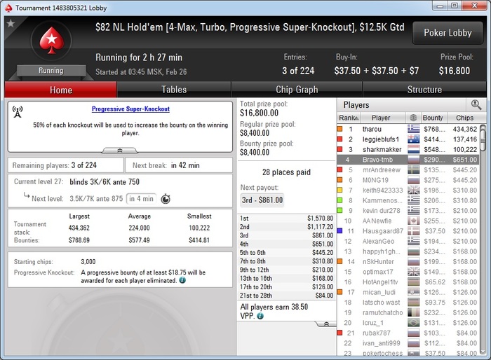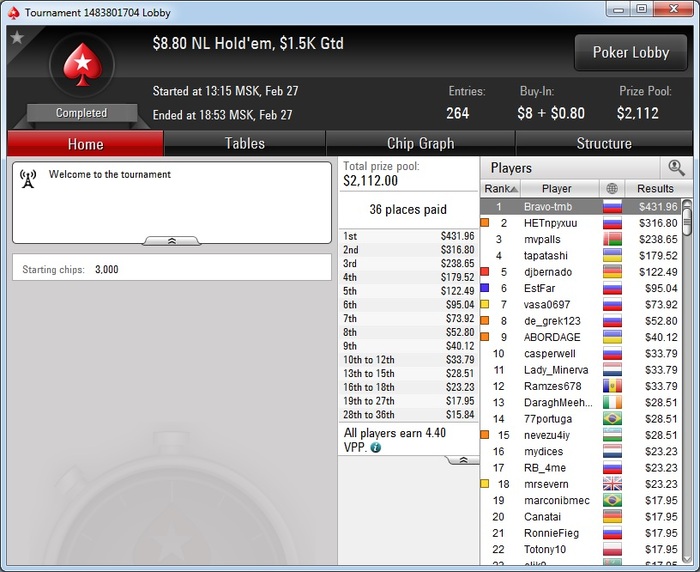 1 место / Александр Бирюков (Россия) / 18,09 GPI Points / приз для победителя - билет на турнир RPT300 (Flight 1A, 9 апреля в 13:00)