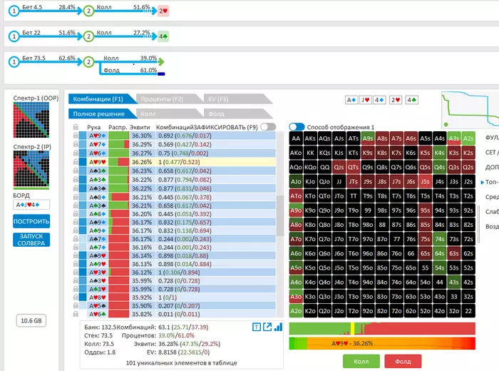 Спасибо за комментарий. Полезу посчитаю. На мою игру часто влияет то, что оппонент из Японии. Надо поиграть с ними, что бы понять покер из параллельной реальности. Ломается игра от регулярного самурайского неадеквата.