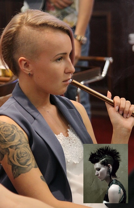 И если обворожительную Дашу я видел впервые, то Настю - еще с прошлого визита на Сибирский тур. Она тогда раскуривала кальяны, и не заметить ее было просто невозможно. Точеная фигурка, умопомрачительная прическа, татуировка розы на правой руке... Назвал ее для себя "девушка с татуировкой дракона":