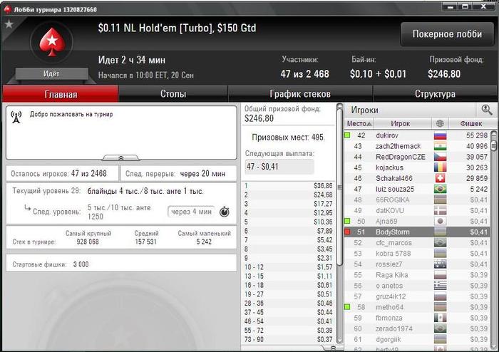 на старзах очень сложно раскрутиться (нужно заносить килополяны) , гораздо проще например в Coral (iPoker), туда можно получить бездеп например от Youpokercash, плюс каждый час фрироллы часовые с на 5 фунтов за 1 место, по утрам там играет человек 40 из которых 20 в ситауте, достаточно легко его выиграть, плюс за мин. депозит в 5 долларов они дают 20 евро в билетах по 5 евро. На эти билеты можно играть турниры типа 100 евро гтд, эти турниры очень легкие также.