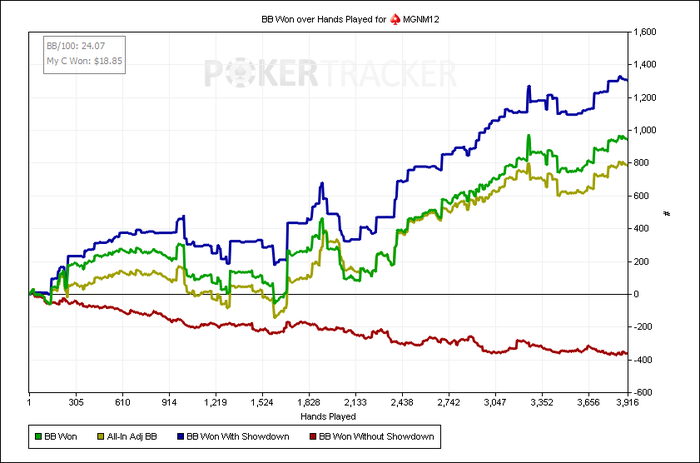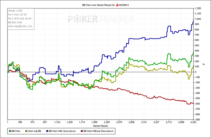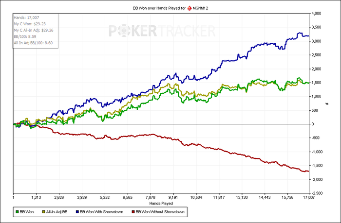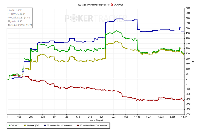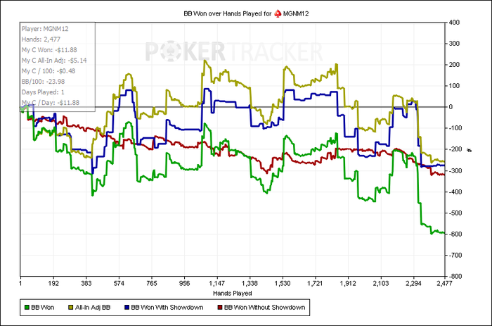 Отыграл 7к,(что приравнивается примерно 1к в день на 6-9 столах 9мах) рук с небольшим,играл по 6 столов,когда заходил жирный фиш за свободный стол- сразу за него садился, но играл не больше 9. Результатом отыгрыша конечно недоволен,мог и больше наиграть,но накладывались дела в реале,приходилось выбирать не в пользу покера.