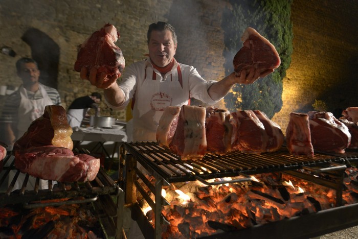 В этот раз мы поехали в Панцано специально, поесть у Дарио стейк по флорентийски. Предыстория у этой истории такова: года три назад заехав во Флоренцию во второй раз мы пришли в знакомый ресторан поесть стейк. В первый раз он был охрененный. Во-второй раз подали кусок говна. Я неимоверно расстроился, жена полезла в инет искать место, где можно поесть нормальное мясо. Оказалось, что в семидесяти километрах от Флоренции есть ресторан, известный во всём мире. Забронировать места смогли только через три дня, ибо сезон. И, поскольку к тому моменту мы уже переехали в Ливорно, ехать пришлось за сто с лишним километров. О чём я ни на секунду не пожалел и поставил себе заметку вернутся в Панцано ещё раз.