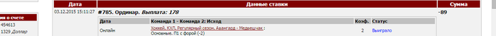 Банк - от всего банка что у меня на линию выделил 5%. Распределять на каждый матч советую равномерно. 04.12.2015 59.Lne. Футбол. Россия. Премьер-лига Футбол. Кубань - Краснодар: Инд.тотал. Кубань (1) бол: 2.14 Сумма ставки: 2500