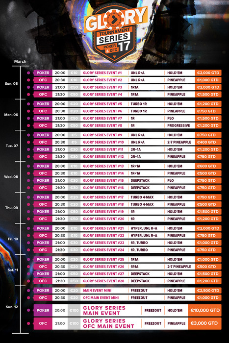 Каждый год турнирная серия Glory Series становится настоящим квестом для всех завсегдатаев покерных соревнований. И все же, каждая традиция хороша, когда в нее вносится нечто новое – именно поэтому мы с гордостью представляем новую большую серию, в которой объединены турниры по ОКП и обычному покеру!