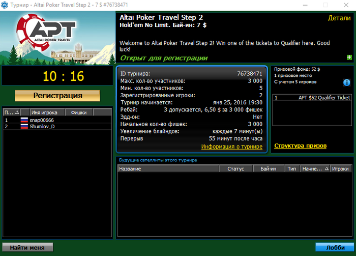 Удачи всем участникам сателлитов на APT!