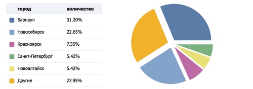 Кто к нам заходит? Приводить гендерную и возрастную подборку нет особого смысла - понятно, что это в основном мужчины от 20 до 35. Другое дело - откуда. Вот тут гораздо интересней. То, что именно Барнаул возглавит список, практически не сомневался. Из этой, по словам Толи Шершнева, "деревни" вышло едва ли не половина всех покеристов Сибири - во всяком случае, из тех, что видел в Altai Palace. Тут выгодное - по отношению к казино - географическое положение (хотя у Бийска оно еще лучше) и... а черт его знает, что! Просто их больше, они активней чем даже новосибирцы. Во времена SPT о последних вообще почти не слышал, - а теперь они строго вторые. При том, что прежний фаворит - Новокузнецк - по хорошо известным причинам вообще не попал в выборку. Будем надеется, это явление временное, - и игроки из этого города обязательно заявят о своем интересе к APT. Совсем нет Кемерово и Томска, о чем с сожалением уже писал. Вялы и господа горно-алтайцы.