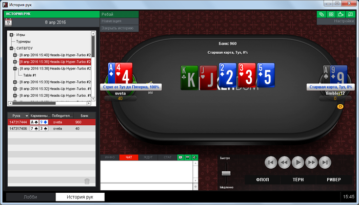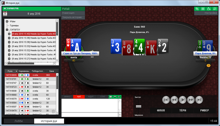 Как сегодня отыграл на 20-40, есть парень под ником "пескарь" который как то непонятно играет, в один день он играет как Маньячина и пишу на него нотсы что он фиш, потом он играет как Телефон, а на 3 день как Хороший регуляр! Хрен знает как с ним играть, вот единственная сессия против него в минус остальные против фишей.