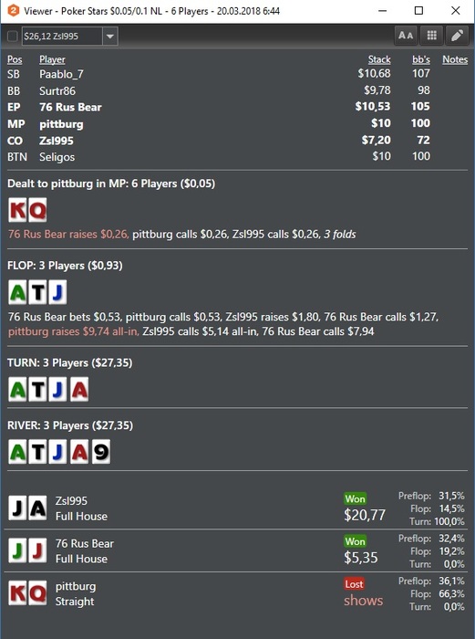 Сет в сет против фиша, два ОЕСД закрыли другому фишу и Валеты в Короли на ББ вс БУ с 6процентным ренжом 4бета. Стоплосс.