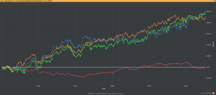 А, ну да , у нас же тут покер. График за март. Плюсом еще волшебный сундук с которого вытряс 100 баксов и +35$ рб.