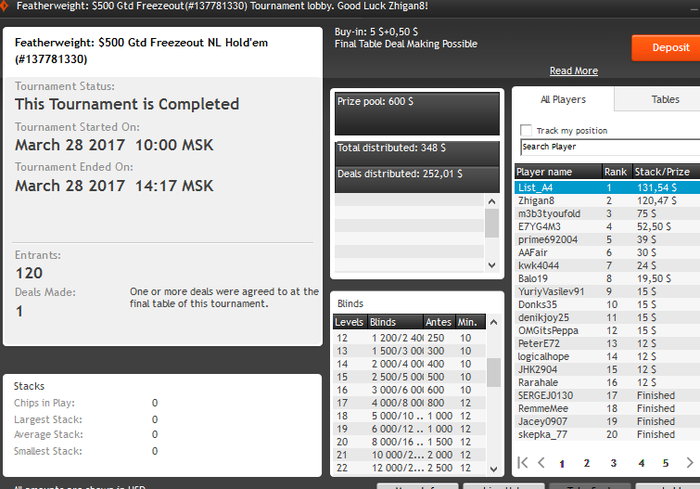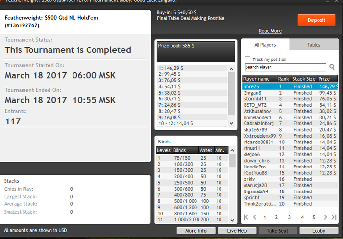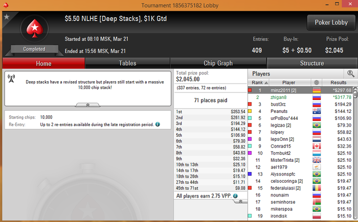 Отчет за март. Отыграл 612 турниров/аби 5.15/ roi 31,2%.( столько я еще не катал за месяц). На 90% перешел на утреннею катку (5-16:00), только в воскресенье сажусь вечером (пока стабильно в минус) . Результаты по сравнению с началом года пошли вверх. Также в этом месяце произошел сдвиг в обучении, провели 2 тренировки со мной- Америки не открыл,но люлей получил и начал делать то, в чем не дорабатывал.