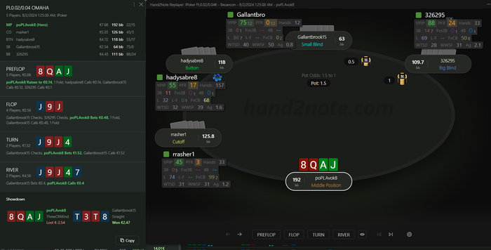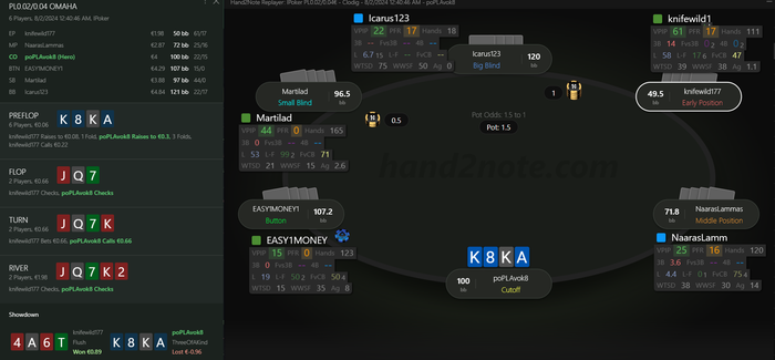 8. Сдался постфлоп везде, не буду ставить полублеф ООП с 6-хай фд.