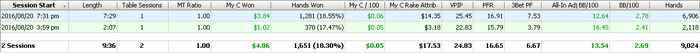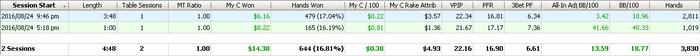 650.69Вчера сыграл 2 сессии: сперва короткую и после перерыва уже нормальную. В первой выиграл +6.93, а вот вторая получилась просто ужасной. За 1.5к раздач (в зуме это примерно 1.5 часа игры) я проиграл 19(!) бай-инов. Такого раньше никогда небыло. Примерно половину (чуть меньше) из этого был недобор по EV, примерно треть - кулера, в которых отскочить было малореально, и остальное - моя плохая игра. Честно говоря, было даже интересно сколько продлиться эта полоса неудачная