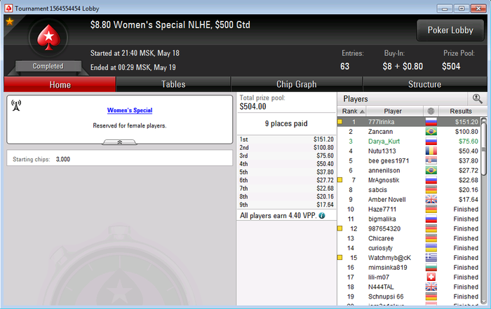 Играла много сатов, прошла в скуп за 109 прогрессивный нокаут.