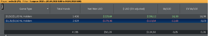 и еще соглашусь с Mishей1980, что сама идея выделять деньги на 100 плохая, не только потому что БР не позволяет, но еще потому что винрейт на нл50 маленький, соответственно на нл100 он будет еще меньше(если не апнет), без обид бро, просто сказал правду