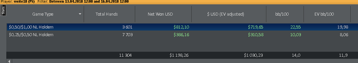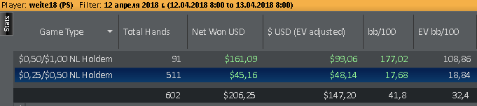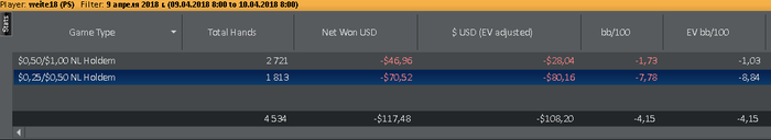 Мне запомнились и понравились слова Optimist1945. Сходу не нашёл цитату, но там типа Если вы играете ФР по тайтовой стратегии даже со слабым винрейтом 2-3 бб/100, то скорее всего на лимите выше тоже будете играть в плюс. Конечно, винрейт будет еще ниже, но общий профит больше. Заодно будете прокачиваться с более сильными оппами Возможно, что-то от себя додумал, как мне больше нравится )) Это наверняка было еще до отмены рейкбека и тогда было еще актуальнее, но всё же, применяя именно эту рекомендацию, я перешёл на НЛ50. У меня и на Нл25 не было толком ни винрейта, ни бра 100БИ.