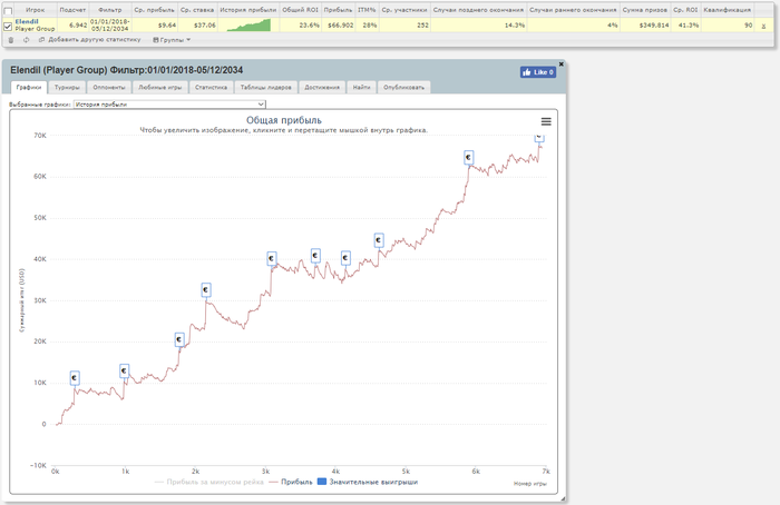 Всем привет. Проходил тренировку у Elendil в школе фристайл покер. Начал играть в 15 году и стабильно заливал, пробовал разные страты тайтовую игру, агрессивную и т.д., но у меня ничего не выходило. Максимальное место которое я занимал было 3 на парти в турнирах по 5.5, которые я пробовал играть регулярно. Но все равно заливал бабки стабильно, залил за несколько лет в сумме наверно 100к руб. Изначально пробовал обучаться, когда только начинал играть, но по не счастливой случайности попал в Академию покера, где люди чисто академики . После этого скептически относился к любому обучению, школу фристайл заметил года 2 назад, но не решался. Думал очередной лохотрон, сомневался 2 года. Затем загуглил , в итоге гугл привел меня на ГТ, в тему Elendila, который значился в школе тренером курса МТТ. Почитал тему и увидел в принципе, что на джипси много кто тренирует и делает это хорошо. В итоге решился пройти обучение и все в покере у меня стало хорошо . После обучения стал стабильно попадать на финалки и в итм, РОИ текущий 66% на 600 турниров, играю аби 5.