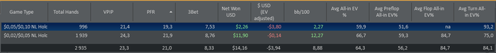 Отыграл 5 мини сессий на 4 столах NL5 и 2 столах НЛ10 6MAX: