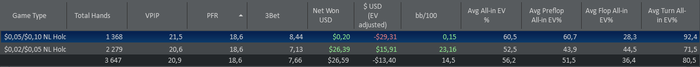 Comment: Cтатами доволен, по сути в 2-х раздачах и 2-ве на НЛ10 съел ЕВ просто и все.