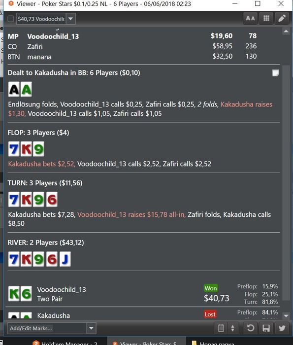 Вот эту раздачу как надо было сыграть? зашла, так как в банк забрели очень манящие игроки, которые с очень высокой долей вероятности проплатили бы нам комбинации. Коллировала флоп и терн по под-оддсам и имплайдам. Все правильно или нет? ставил в нас ну очень интересный товарищ.