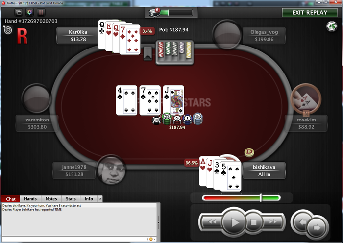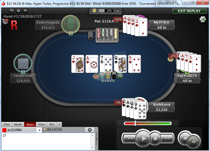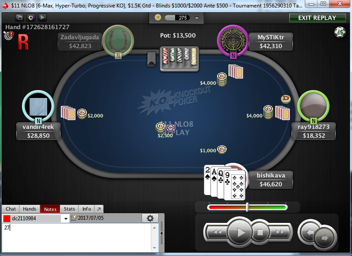 bishikava @ 5.7.2017 через нитовых оппов с хдж опенпушить K/9s в 3бб на бб, на катофе поймали с QQ. Учитывая структуру здесь может поспешил все таки. Кажется прям изменил себе.