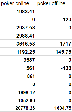 Короче, есть еще сдача хаты и так кое что по мелочи. В итоге в среднем 2,4к евро в месяц. Когда год назад составлял бюджет на год планировал на 3к в месяц. Не удивительно, что сделал не все что было запланировано:) Но все равно я доволен. Еще год назад бюджет был на 1к евро в месяц. Так что долгих лет жизни покеру и всех с Наступающим