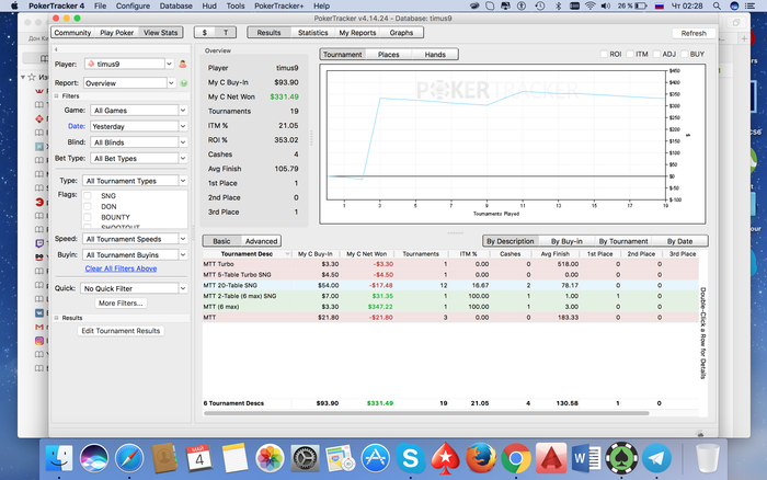 еще сделал маленький прорыв пересилил эго и поставил фильтр на байины в турнирах до 19$