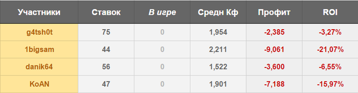 1bigsam 1 Mohamed Safwat-Gael Monfils тм 18 2,170 2 Akira Santillan- Casper Ruud п1 2,850 3 Adam Pavlasek- Lucas Pouille ф1 +4,5 1,900 4 Dan Evans -Dustin Brown ф2 +3 1,990 5 Damir Dzumhur-Stan Wawrinka ф1 +5 1,925 6 Dudi Sela-Nick Kyrgios тм 20 2,030 7 Kateryna Kozlova- Kai-Lin Zhang тм 21 1,925 8 Cagla Buyukakcay-Risa Ozaki тм 21 1,917 9 "Gastao Elias- Orlando Luz" тм 20 2,140 10 Lucas Gomez-Borna Coric тм 18 1,813 11 Kirsten Flipkens-Renata Zarazua тм 18 2,040 12 Andy Murray -Malek Jaziri тм 18 1,909 13 Tomas Berdych-Lukas Rosol тм 20 1,970 14 Robin Haase- Denis Istomin тм 23 1,925 15 Roberto Bautista Agut-Fernando Verdasco тм 22 1,877 16 Marcel Granollers-Damir Dzumhur тм 22,5 1,869 17 Roger Federer-Evgeny Donskoy тм 19 1,757 18 Marius Copil- Lucas Pouille тм 22 2,130 19 Dan Evans-Gael Monfils тм 21 2,060 20 Daniil Medvedev-Philipp Kohlschreiber тм 22 2,190 21 Andy Murray-Guillermo Garcia-Lopez тм 18 2,060 22 Federico Delbonis-Casper Ruud ф1 -4 2,290 23 Donald Young-Nick Kyrgios тм 21 2,000 24 Yoshihito Nishioka-Jordan Thompson ф1 -1,5 сета 2,340 25 Novak Djokovic- Juan Martin Del Potro ф1 -4 2,100 26 Ajla Tomljanovic-Kirsten Flipkens тм 21 2,000 27 Fernando Verdasco-Gael Monfils тм 22 2,040 28 Evgeny Donskoy- Lucas Pouille тм 22 1,980 29 Andy Murray-Philipp Kohlschreiber тм 19 2,080 30 Robin Haase-Damir Dzumhur тм 22 2,080 31 Federico Delbonis- Joao Sousa п1 1,709 32 Steve Johnson-Marin Cilic тб 23 1,990 33 Novak Djokovic-Nick Kyrgios ф1 -4 2,060 34 Kirsten Flipkens- Kristina Mladenovic тм 21 1,826 35 Mirjana Lucic-Baroni- Pauline Parmentier тм 21 2,010 36 Alessandro Giannessi-Fabio Fognini тб 21 1,952 37 Kai-Lin Zhang-Ashleigh Barty ф1 +5 1,970 38 Fernando Verdasco-Robin Haase тм 22 2,16039 Andy Murray- Lucas Pouille тм 19 2,190 40 Magda Linette-Ying-Ying Duan тм 21 1,970 41 Чилич-Надаль п1 3,890 42 Nick Kyrgios- Sam Querrey тм 23 1,98043 Mirjana Lucic-Baroni-Lesia Tsurenko ф2 -1,5 3,410 44 Марей-Вердаско п2 6,950