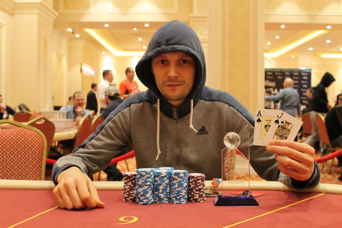 Эдуард Ким устал уже выкидывать (сам признался) и с UTG запушил 92К на , получил колл от Ямпольского Игоря с , флоп , терн добавил ауты Эдуарду , но ривер