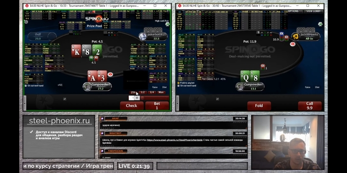 Несколько дней назад я закончил сотрудничество с СФ и начал обучать в проэкте PokerHero, который, по моему мнению, с запасом является топ-1 по темпам роста, качеству и количеству создаваемого контента для студентов начиная от 2 до 50 лимита, совмещаемого с отличным покерным софтом для самостоятельного развития с тем темпом, который является разумным для вас прямо сейчас. Сейчас провожу один лайв-стрим в неделю для всей школы и занимаюсь со своей закрытой группой на 7 чел, занятия в которой проходят приоритетно в индивидуальном формате. Кроме этого рассказываю ребятам эксплойты с наибольшим ев по сравнению с гто-игрой, плотно работаем уделяя внимание игре именно против фишей. Уверен, что за несколько месяцев понимание, желание работать и развиваться существенно возрастут при должном подходе.