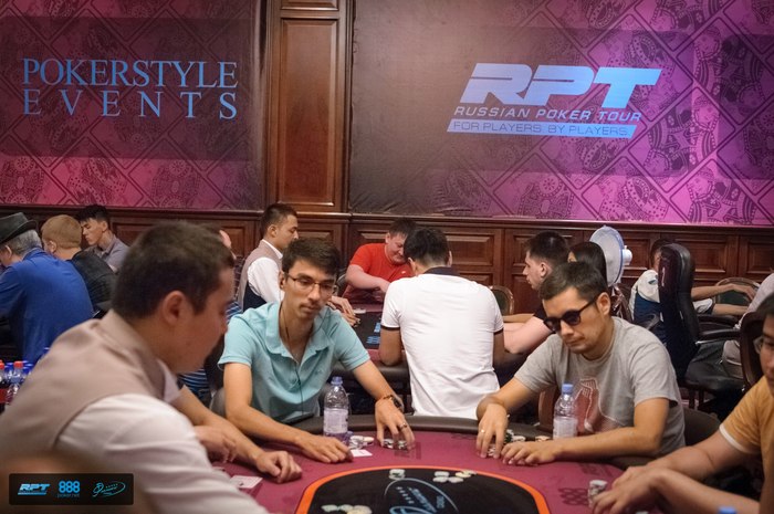 Доброго времени суток игрокам! Восьмой день серии Russian Poker Tour Казахстан открывается с продолжения турнира "$100,000 Main Event". Прямо сейчас игра идёт за столами "Турбо-дня" Главного турнира - стартовый стек 30k, блайнды по 12 минут. А в 15:00 начинается Объединённый "Day 2" день - стартовый стек 30k, блайнды по 45 и 60 минут.