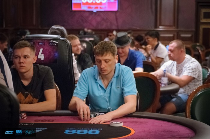 "Раньше много играл и онлайн и оффлайн. А потом у меня случился перерыв на два года, в течение которых я вообще не играл. RPT Казахстан это первая катушка после этого перерыва", - рассказал Беибут, который пару дней назад взял 5-е место турнира $88,000 RPT X-Factor. "Касательно мэйна - игра сегодня очень тайтовая пошла - много средних и коротких стеков. Свой уровень игры оцениваю как средний в этом турнире, но вполне возможно смогу выйти за финальный стол".