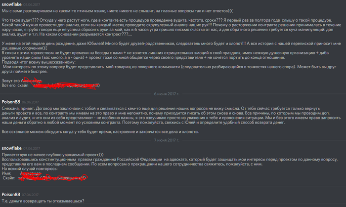 ssnowflakess @ 24.7.2017 После недельного общения с Ирой, я предупредила проект в ее лице, что общение по поводу разрыва контракта с ними теперь будет вести мой адвокат,