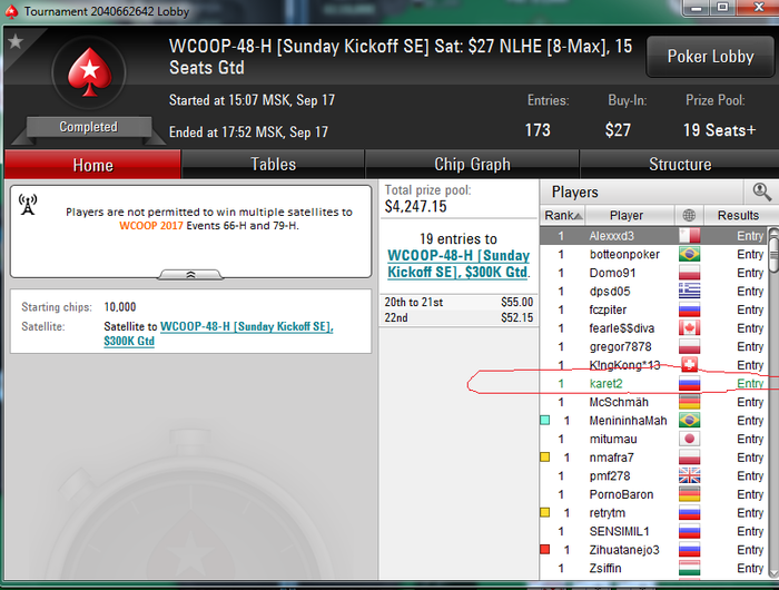 nepobankrollu @ 14.8.2017 Были и победы, но к выигранным деньгам я относился не серьезно, поэтому внизу до сих пор.