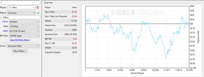Вцелом похвастаться нечем но и не сказать, что ситуация катастрофа. Катаю практически один сорокет, изредка подмиксовываю с нл20 когда не хватает столов, иногда добавляю один 9макс нл60.