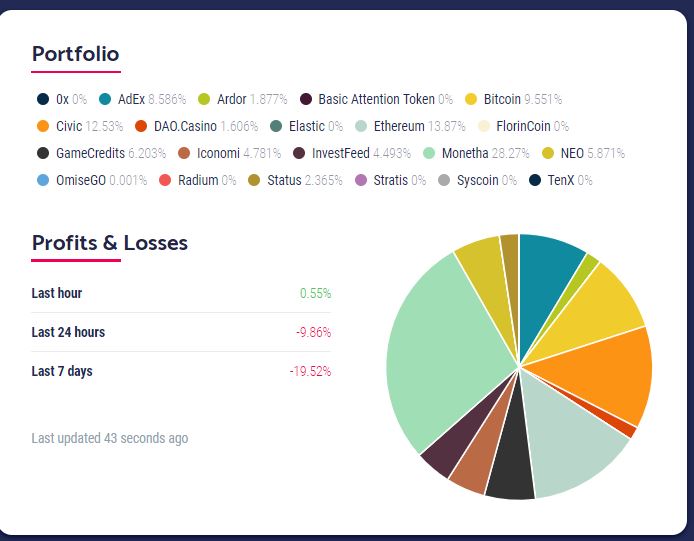 0% это те монетки, которых хочется прикупить, эфир весь пойдет на следующие исо, и не хватает блэкмун токенов. Жду поскорее избавиться от монеты, плохо когда один токен занимает почти треть. Держу ее, потому что жду листинга на большую биржу, да и так, она неплохо позиции держит.